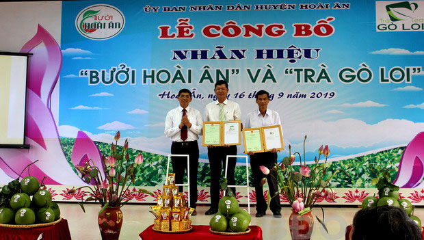 Ngày 16.7.2019, Cục Sở hữu Trí tuệ đã ra Quyết định số 57153/QĐ – SHTT về việc cấp Giấy chứng nhận đăng ký nhãn hiệu số 324061 cho nhãn hiệu “Bưởi Hoài Ân”, nhãn hiệu được cấp cho Hội Nông dân huyện Hoài Ân. Ngày 10.4.2019, Cục Sở hữu Trí tuệ ra Quyết định số 26072/QĐ-SHTT2019 về việc cấp Giấy chứng nhận đăng ký nhãn hiệu số 317761 cho nhãn hiệu “Trà Gò Loi”; nhãn hiệu được cấp cho UBND huyện Hoài Ân.