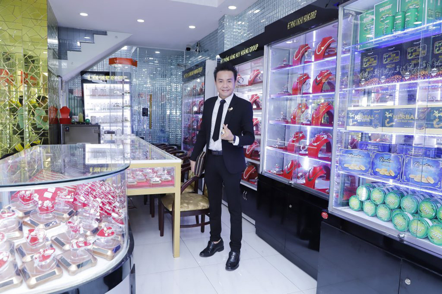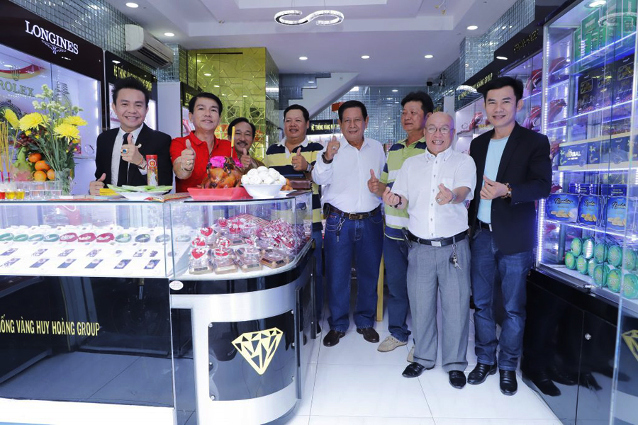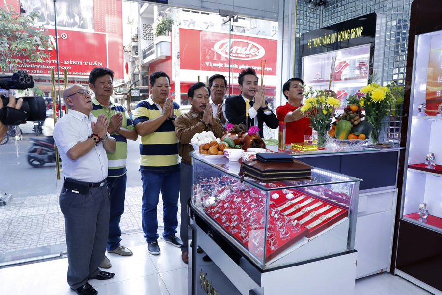 Nam vương Huy Hoàng cùng gia đình và bạn bè cúng khai trương cửa hàng vàng bạc đá quý