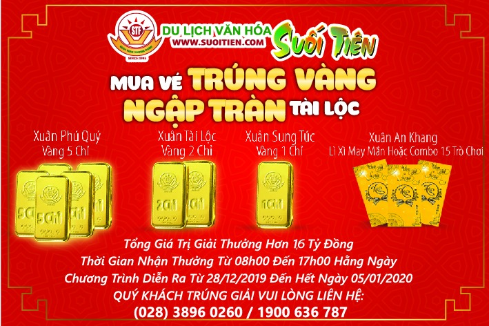 Từ ngày 28/12/2019; du khách đến với Suối Tiên, khi mua vé cổng sẽ được tặng ngay thẻ cào may mắn “Mua vé trúng vàng, ngập tràn tài lộc”.