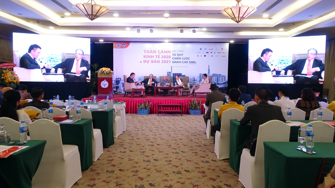 Hội thảo: Toàn cảnh kinh tế 2020 và dự báo 2021 – Tư duy chiến lược dành cho SMEs, với các chủ điểm như: toàn cảnh kinh tế 2020 và dự báo 2021, bất động sản – Chuyển đổi và thích nghi, tư duy chiến lược dành cho SMEs và tổng kết, định hướng hành động cho các doanh nghiệp. Với sự chia sẻ của các chuyên gia như: ông Trần Đình Thiên – Nguyên Viện trưởng Viện Kinh tế Việt Nam, ông Đặng Hùng Võ – Nguyên Thứ trưởng Bộ Tài Nguyên Môi trường, ông Nguyễn Đức Thành – Nguyên Viện trưởng Viện Nghiên cứu Kinh tế và Chính sách (VEPR), bà Vũ Thị Thuận – CTHĐQT Công ty CP Traphaco, ông Nguyễn Tất Thịnh – Chủ tịch Hội đồng giảng huấn – Tổ chức Giáo dục Đào tạo PTI….
