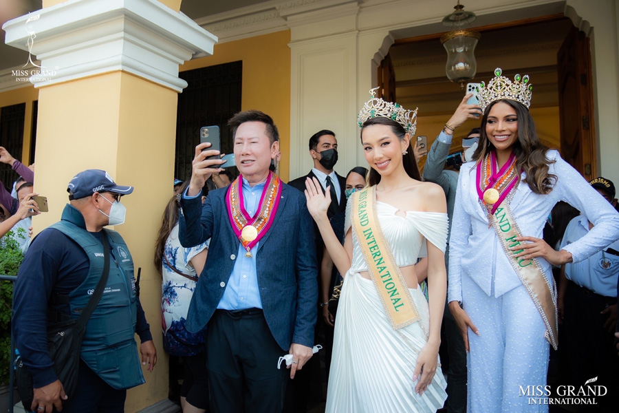 Hoa hậu Thùy Tiên cùng chủ tịch Nawat còn trao vương miện và sash cho Miss Grand Peru 2022 – Janet Leyva trong buổi lễ chào đón. Bắt đầu hành trình tìm kiếm những cô gái sáng giá cho vị trí kế nhiệm Thuỳ Tiên tại Miss Grand International 2022.