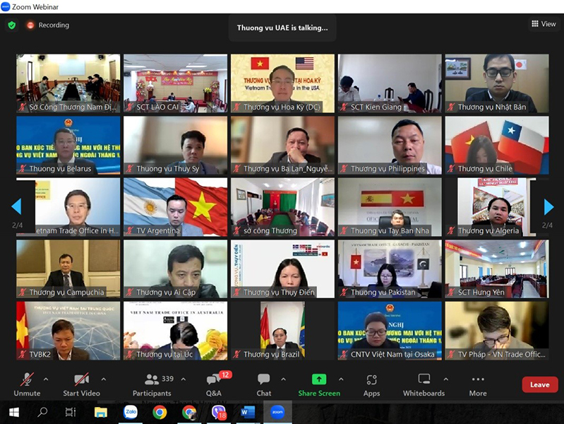 Hội nghị thu hút đông đảo các Thương vụ, Sở Công Thương, đại biểu tham dự trực tuyến.