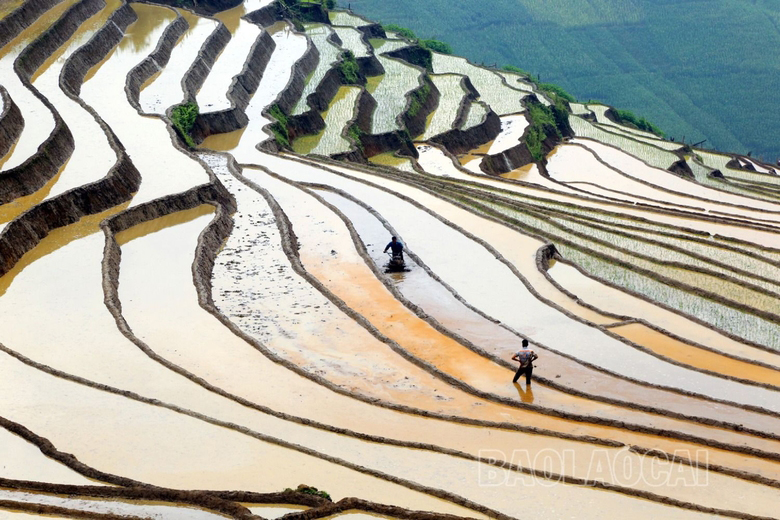 Đồng bào vùng cao xã Y Tý (huyện Bát Xát) khẩn trương ra đồng sản xuất với những công việc như đắp bờ, cày, bừa, cấy lúa.Người dân các xã vùng cao sử dụng máy cày trên ruộng bậc thang thay cho sức kéo của trâu trước đây.Các gia đình người Mông đổi công cho nhau, làm theo phương pháp “cuốn chiếu” để nhổ mạ nhanh, chuẩn bị cho giai đoạn cấy lúa.Trong ngày cuối tuần, các em nhỏ cũng ra đồng giúp bố mẹ nhổ mạ và chuyển mạ tới khu ruộng gần.Ngay từ đầu tháng 5, nông dân các xã vùng cao huyện Si Ma Cai đã khẩn trương cấy lúa cho kịp khung thời vụ.Năm nay do lượng mưa ít nên các tràn ruộng bậc thang “đổ nước” không đều. Khu ruộng nào đã đủ nước, bà con đang tranh thủ cày, cấy luôn trong tháng 5.Trên ruộng bậc thang ở vùng cao những ngày này, không khí lao động diễn ra rộn ràng, khẩn trương.