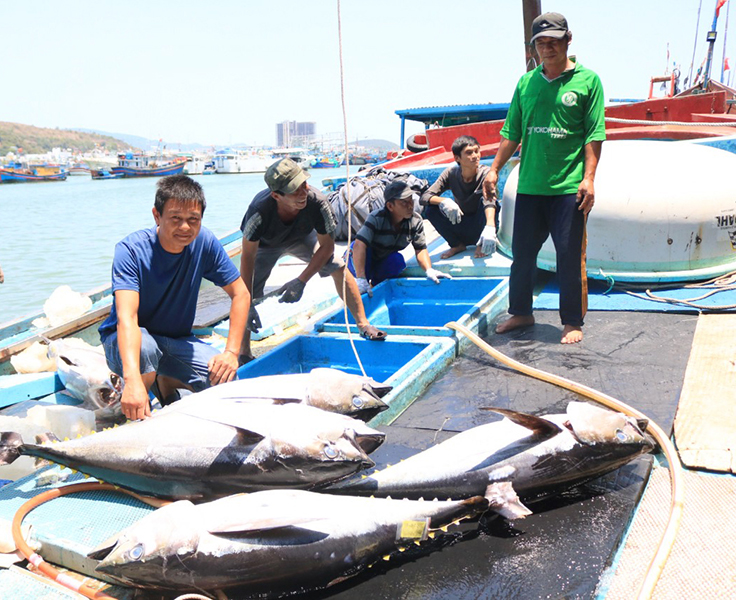 Ngư dân Khánh Hòa đưa cá ngừ đại dương khai thác về cảng Hòn Rớ (TP. Nha Trang).