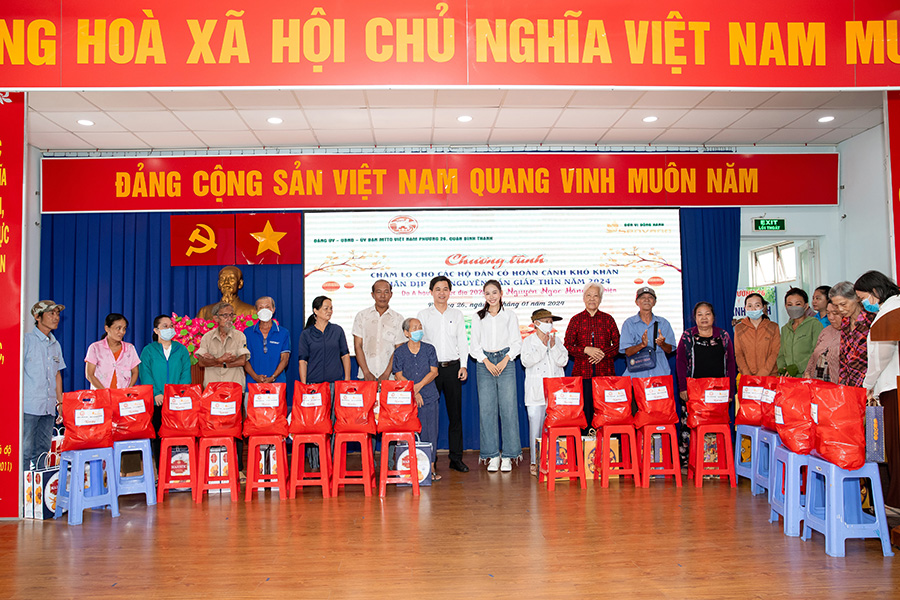Mới đây, Ngọc Hằng đã đồng hành cùng Ủy ban MTTQVN Phường 26, quận Bình Thạnh và Công ty Sen Vàng tổ chức hoạt động “Chăm lo cho các hộ dân có hoàn cảnh khó khăn nhân dịp Tết Nguyên Đán Giáp Thìn 2024”, với mong muốn cho các hộ gia đình sẽ có một cái Tết ấm áp hơn. Đây cũng là chuyến đi thiện nguyện đầu tiên sau khi nàng hậu trở về từ cuộc thi nhan sắc quốc tế tại Ai Cập.